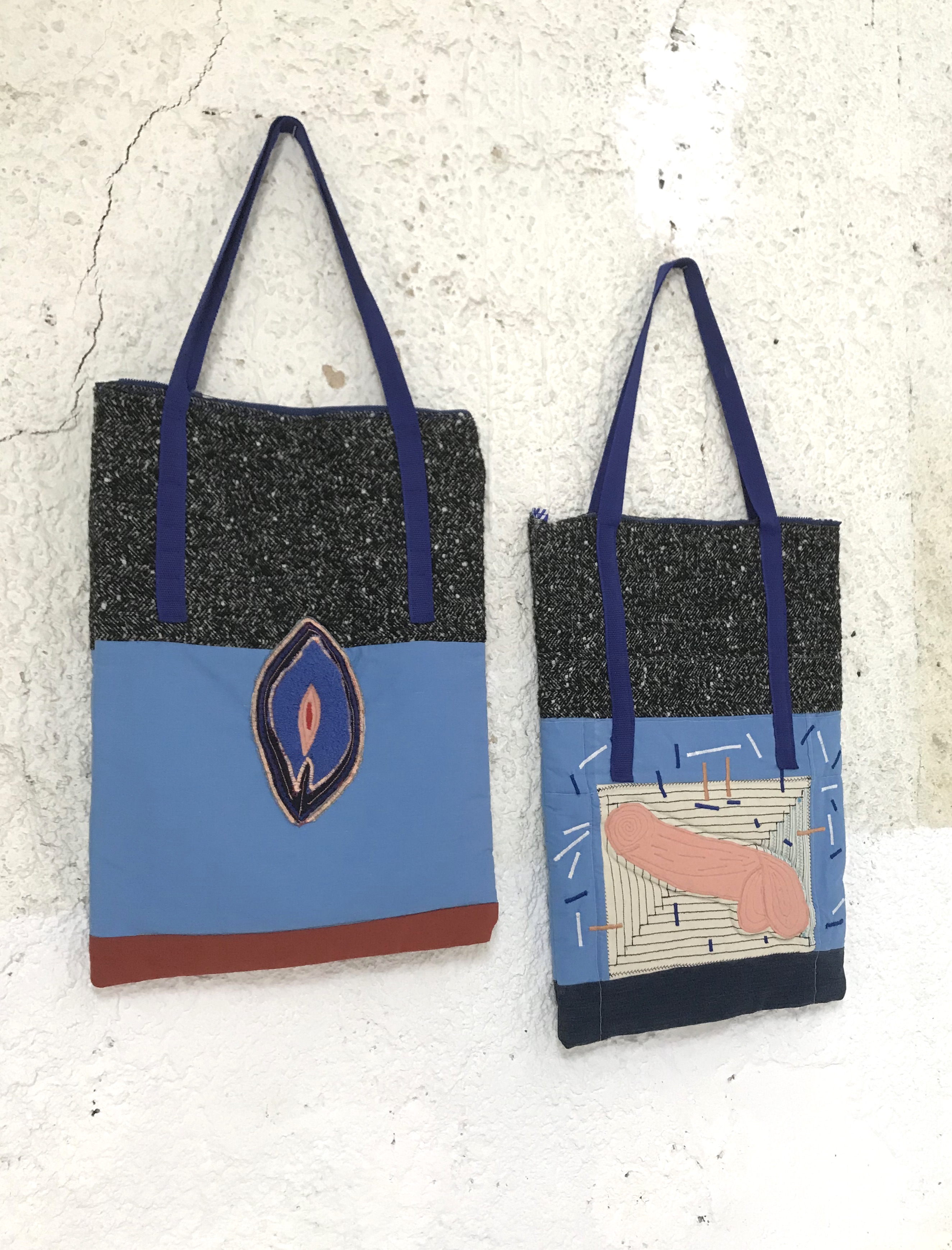 Hand stitched embroidery, machine sewn embroidery, wool/cotton/felt/synthetic repurposed fabrics, zippers, 2018