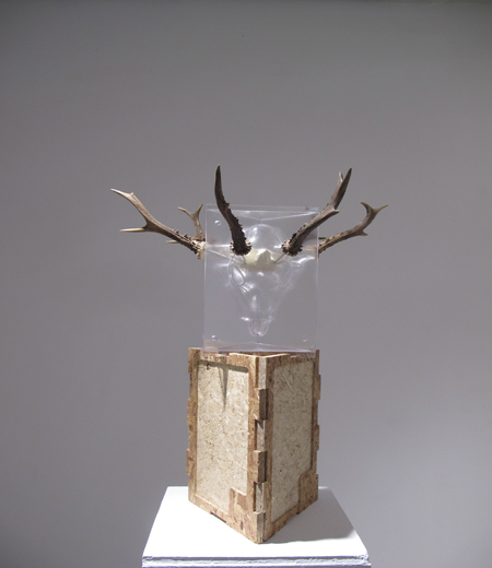 Vacuum formed PETG plastic, cast urethane, stainless steel, Roe Deer antlers
