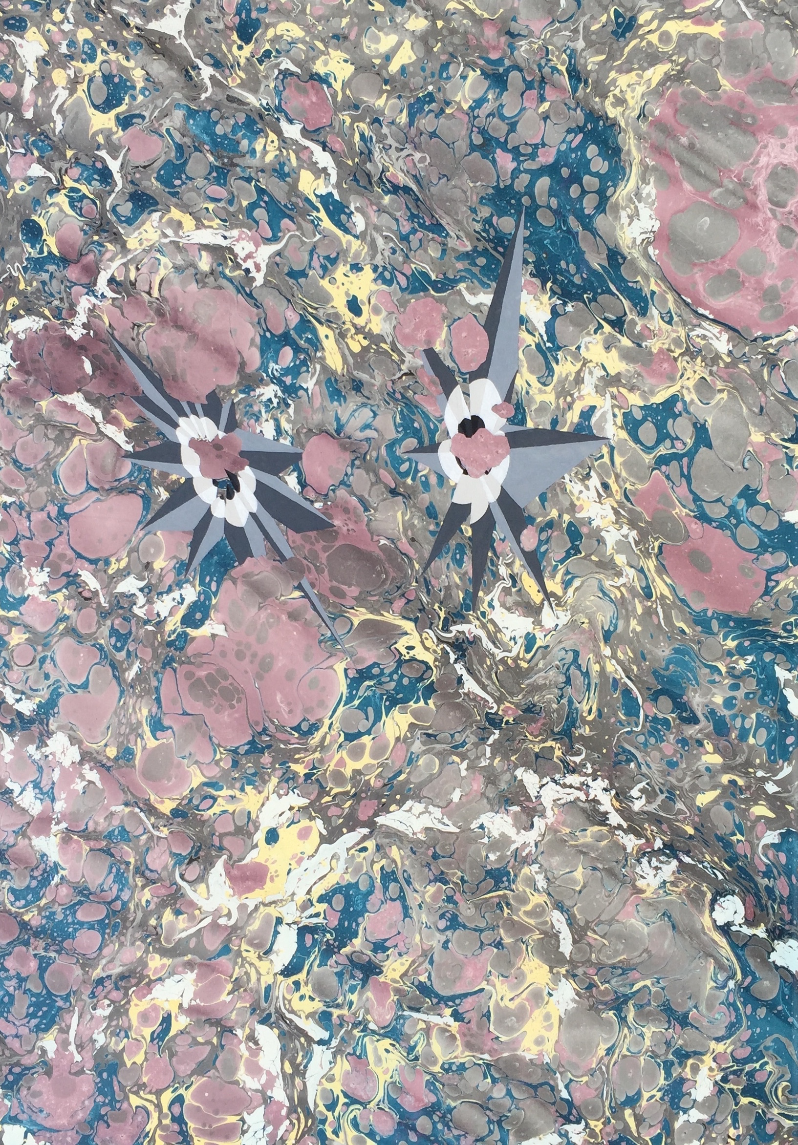 Marbling and acrylic on cardboard, 2017